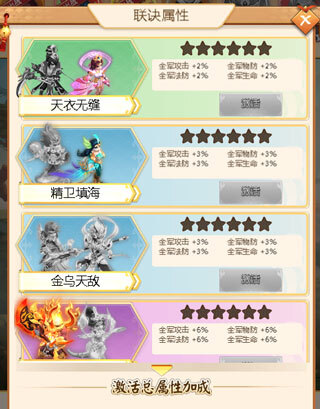当主公拥有其中两个英灵的时候,可以激活连诀属性,从而增加全军四维的属性百分比,这个百分比增加的属性也是非常可观的。