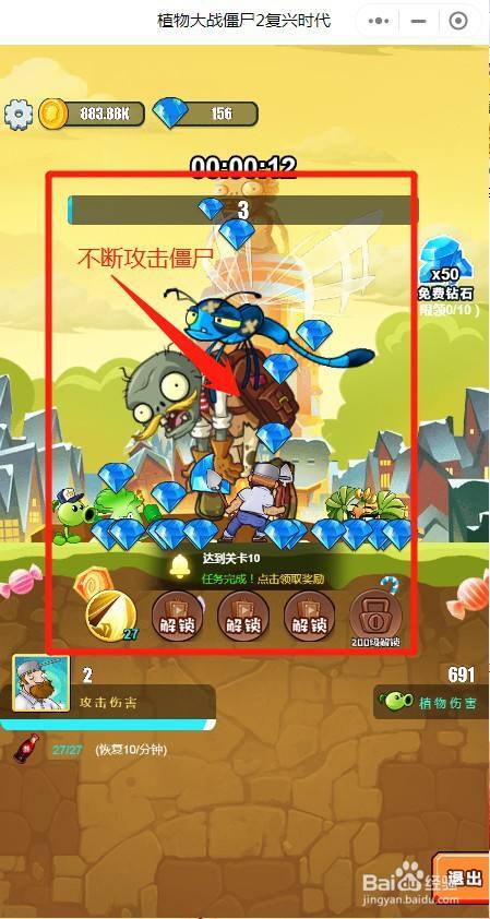 然后不断攻击僵尸,就会掉落钻石。