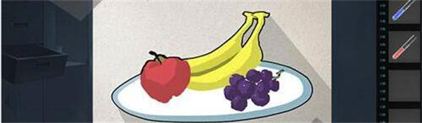 5、依据水果来确定要获取的颜色。红色已经有现成的,黄色由绿色与红色混合而成,紫色则是红色与蓝色混合而成。