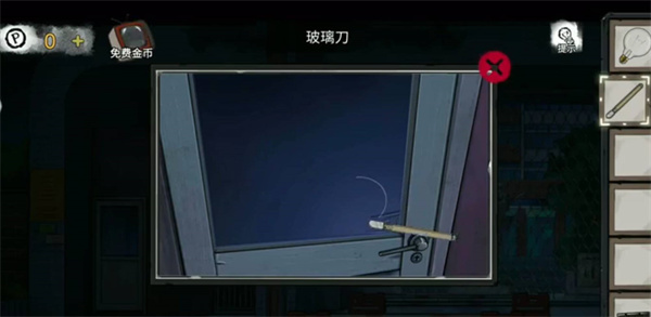 7.点击门卫室的门,用玻璃刀划开玻璃,点击门内侧的把手,打开门。