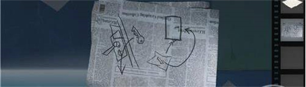 9.点击桌子,打开文件夹,拾取橘色按钮。移开报纸,拾取开瓶器。