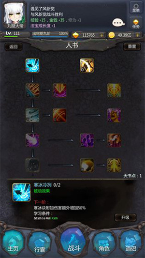另外之后升级阅历拿到的通玄录和完整的修元丹方都推荐当掉,因为效率比较低。推荐优先挂阅历直到拿到的功法(五气朝元决)再使用。
