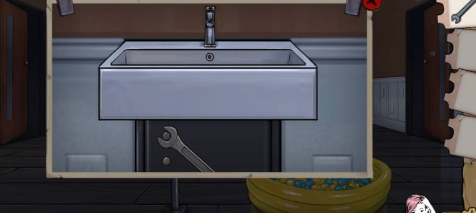 4、回到有蓝色玩具的房间,用扳手把水龙修好。