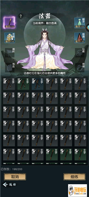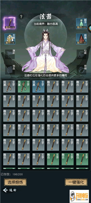 当玩家获取到契合自身修炼等级的更高级法器时,只需点击装备穿戴进行替换即可。在历练过程中,特别是挂机获取收益时,常常会得到一些已不再适用的低级装备。面对这些装备该如何处理呢?答案是将它们吞噬,用作强化装备的材料。