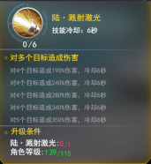 技能1:散射激光-对1个敌方军团军团造成180%攻击伤害并溅射其他军团,有概率附加一层燃烧效果,持续5秒
