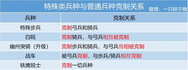 如果还是嫌查阅表格麻烦的话,还有下面这张简化的(只说明了特殊兵种和普通兵种之间的关系,但一般也够用啦)