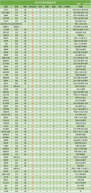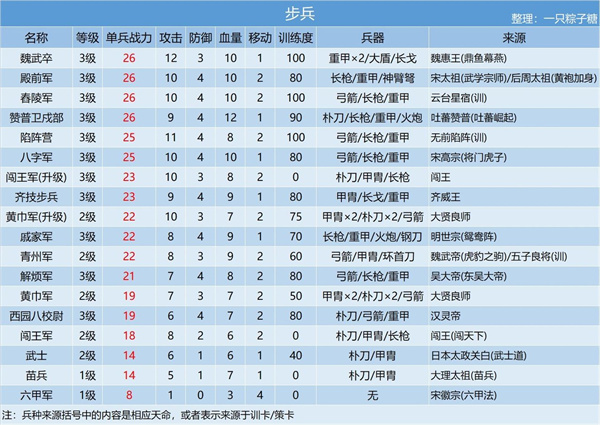 1.兵种详细数据