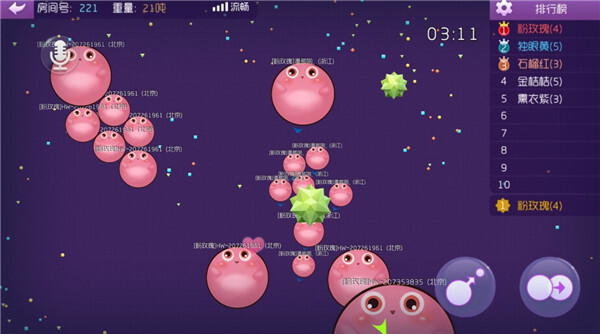 在团战里,围歼敌人的办法多种多样。像用小球去引诱对方分身,亦或是把敌方围堵至墙角,接着主球上前将其一举消灭。另外,还有一种不太容易被人想到的战略,当遭遇大型敌方队伍时,中等大小的个体能够跑到敌人后方,这样一来既能截断敌方退路,二来或许还有机会获取混战中吐出的孢子,助力己方增强实力。