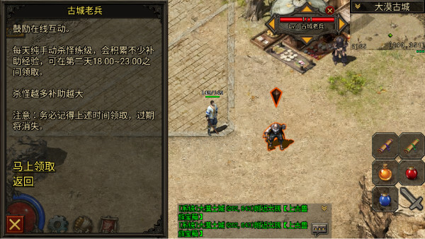 1各位勇士于新手村升至15级后,将自动传送至大漠古城。抵达古城后,先前往安全区左下角(坐标293,352),向古城老兵领取散人福利——论坛礼包。礼包内含回城石、随机石、书页以及喇叭,礼包码为:fgcs 。