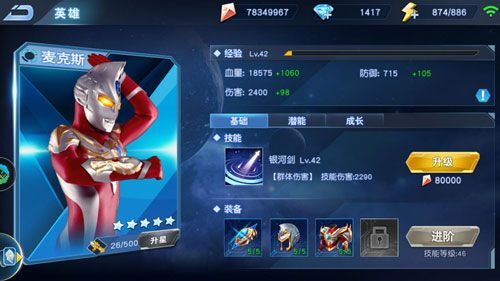 装备这个东西在每个游戏里面都是必不可少的,只是以不同形式出现,而装备的更新进阶进度直接就关系到副本能不能打过了,每个奥特英雄都有四件装备可以获取,会根据你的副本进度和前一阶段装备的升星进度来陆续开放,每件装备都有五次升级的次数,每次升级会提供额外的属性。