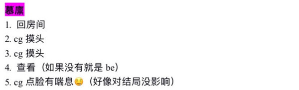 以下四点小技巧是目前已知能增加好感度的方法,实际上,好感度的积累关键还是看姐妹们是否更主动地去了解这些男性角色。但听说粉毛慕廪这个角色比较容易走向坏结局,喜欢粉毛的姐妹一定要留意!