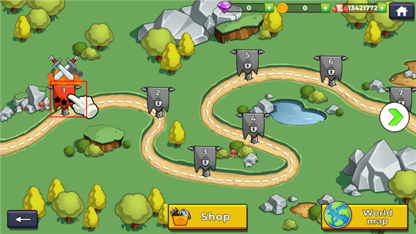 6、进入关卡,控制弓箭方向即可消灭敌人。