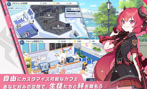 根据自己的需要安排学生的日程来获得好感度(必得)、技能升级材料(概率获得)和碎片(概率获得)