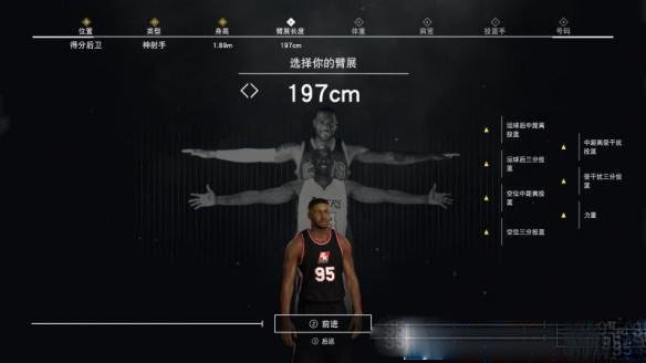 挑选体格:体格涵盖身高、体重、臂展。依据球员位置确定身高与体重,控球后卫和得分后卫的身高相对较矮,可选择175cm至188cm之间的身高;大前锋、中锋以及小前锋的身高,最好在185cm以上。