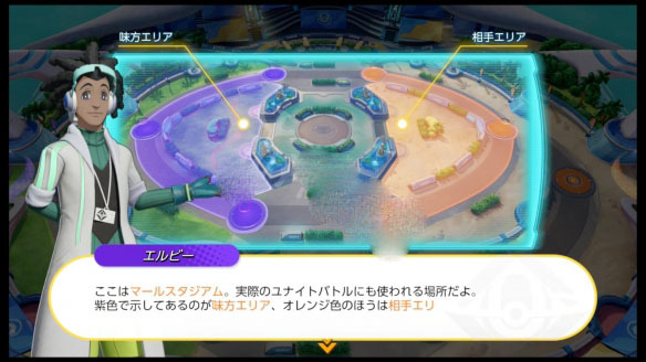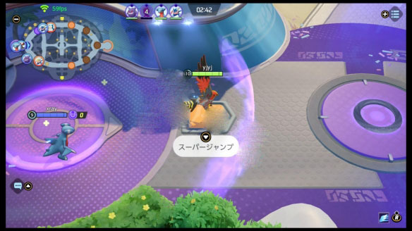 在地图中部的野区附近,分布着四个小型跳板,借助它们能够翻越墙壁。当对局推进到后半程,基地内会出现大型跳板,站到跳板上并按下↓键,就能选择外围的得分点作为降落地点。另外,宝可梦落地时会产生一个短暂的范围击飞效果。