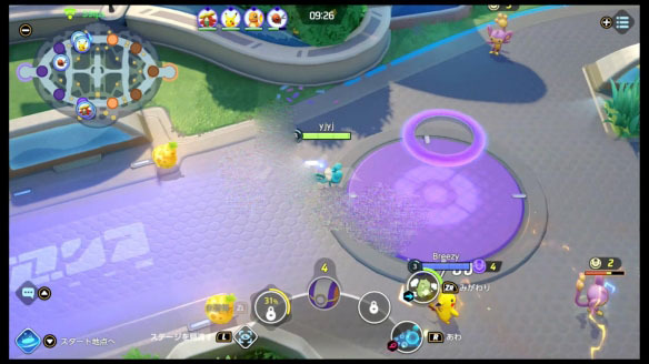 对局双方各有5个得分点,得分点有些类似于防御塔的概念。宝可梦站在己方得分点上会持续恢复血量。