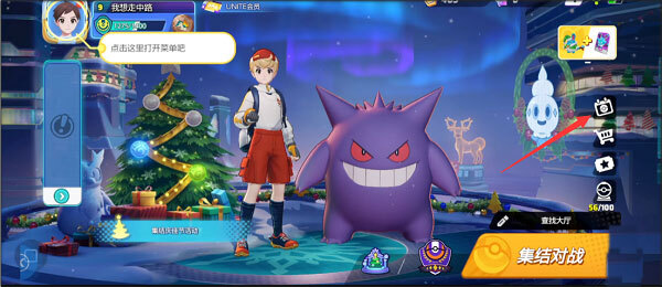 1、在宝可梦大集结手机版主界面,点击右侧第一个图标按钮;