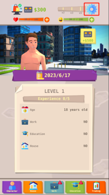 1、进入成功人生模拟器游戏中,点击右上角的【设置】图标