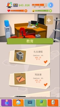 3、完成课程后可以解锁更好的工作,让主角的收入迅速提高。