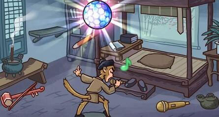 点击菩提老祖的头让其发光,发光后就会自动变成灯球升到空中,最后成功通关;