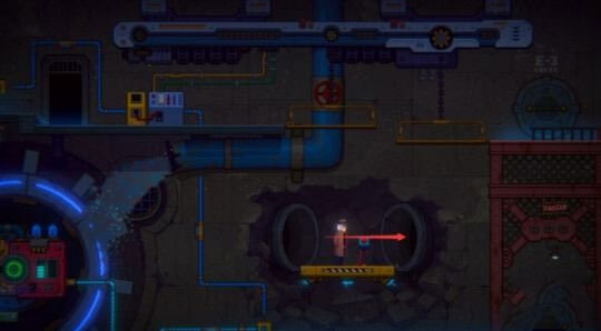 8、出来后沿箭头往下入去E-1,或者一直往右走进入管道,把升降梯放下,两种方式都能回去。