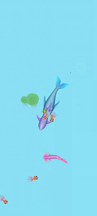 然而,只有当你合成锦鲤,游戏才真正拉开帷幕。此刻,水池中的世界会变得极度危险,稍有不慎,撞上粉色电鳗,游戏便宣告结束,你只能从蝌蚪状态重新开始。又或许,被鲨鱼一个摆尾拍回原形,诸如此类。