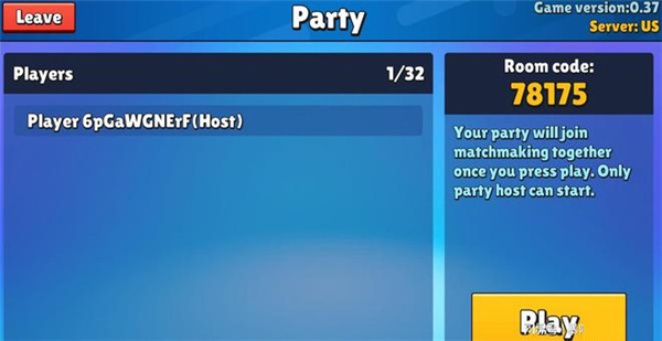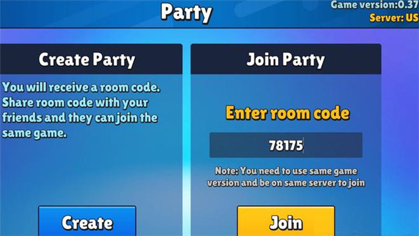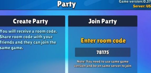 4、点击右侧PARTY进入多人模式,可以创建房间,也可以输入好友的房间代码加入房间;