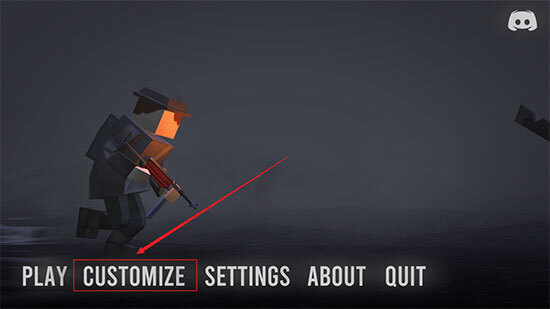 1、进入方块战场最新版游戏后,点击【CUSTOMIZE】;