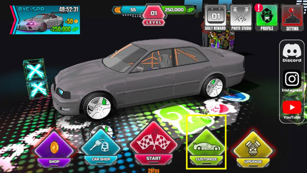 1、当进入项目漂移2.0这款游戏后,点击游戏界面左上角的“setting”。