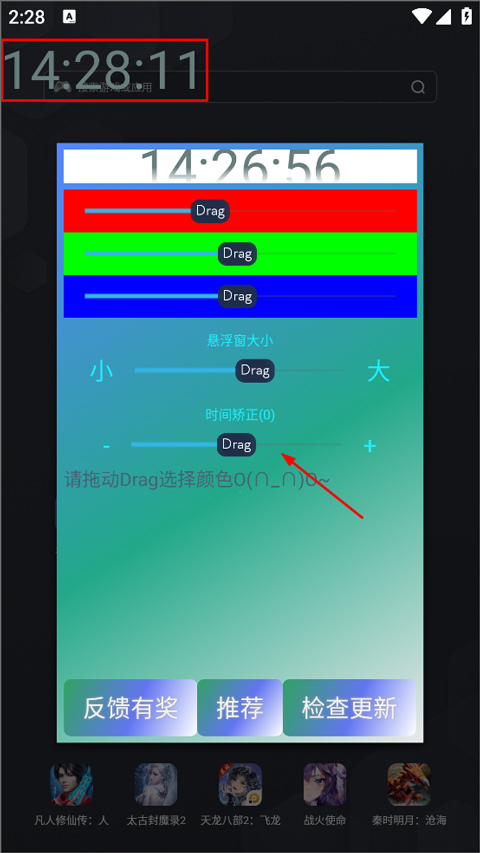 3、进入设置页面,用户能够对时间字体的颜色、大小以及悬浮窗大小等进行设置,完成设置后便会在桌面呈现。