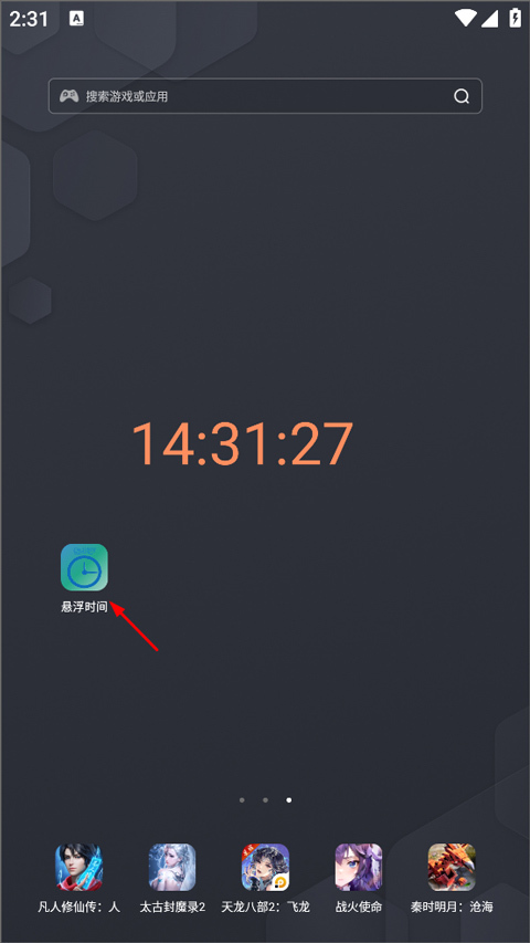 1、在桌面上,用户能够看到已经设置好的悬浮时间。若要进一步操作,可在手机中找到悬浮时间APP并点击打开。