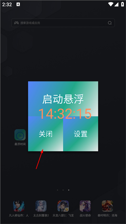 2. 启动悬浮页面设有“设置”和“关闭”两个选项,用户点击“关闭”,就能关掉悬浮时间。