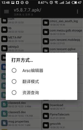 然后我们就点击一下后缀名为arsc的文件,软件名称以及相关文字都在里面修改。