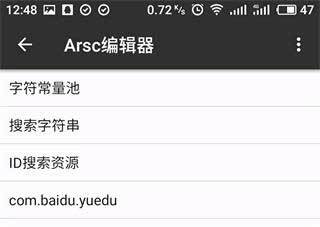 打开方式选择第一个arsc编辑器。然后选择字符常量池。