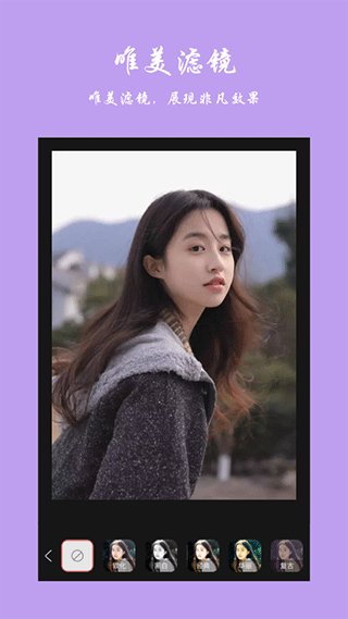 1、【美化照片】拥有简单实用的照片美化功能,涵盖精美滤镜、趣味贴纸、精致画笔、相框、文字板以及智能调色,助力快速生成时尚大片。