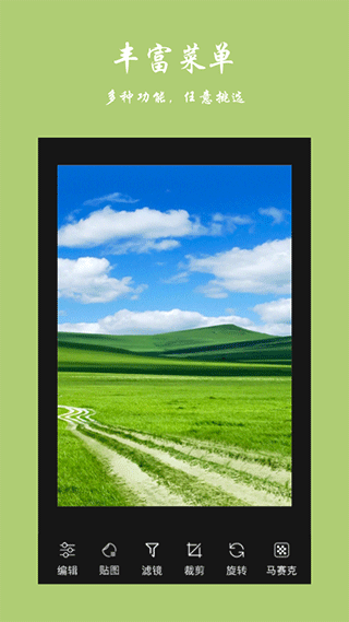 1、功能多多且便捷好用的手机修图工具,在线修图的素材以及模板很丰富;