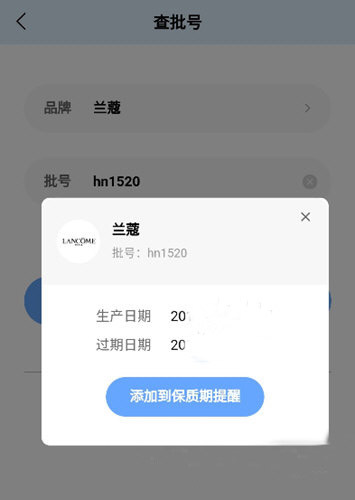 3、会显示该批号的生产日期、过期日期,还能添加到保质期提醒。