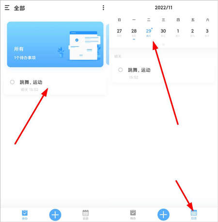 3、设置好待办事项后,既能够在首页查看,也能点击日历进行查看。