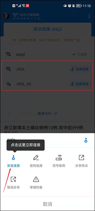 2、便捷:只需一键即可查询免费WiFi热点,并一键实现安全连接。涵盖中国移动CMCC、中国联通ChinaUnicom、中国电信ChinaNet等运营商的热点。