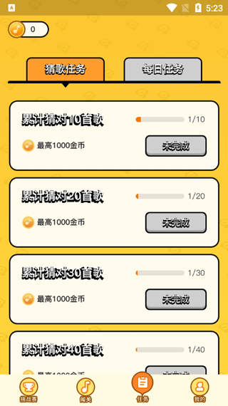8、在下方的人物处,能够查看每日完成的猜歌任务,并领取相应奖励。