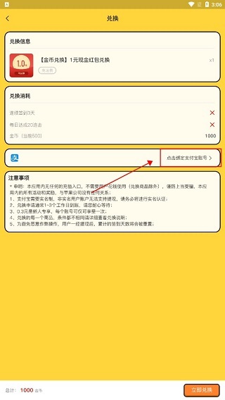 点击绑定支付宝账号(微信登录的用户可以直接微信到账)