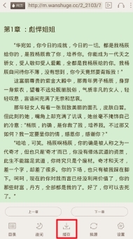 当用户在小说阅读页面点击屏幕中央时,页面底部(如以下红色方框区域所示)会出现【缓存】按钮。