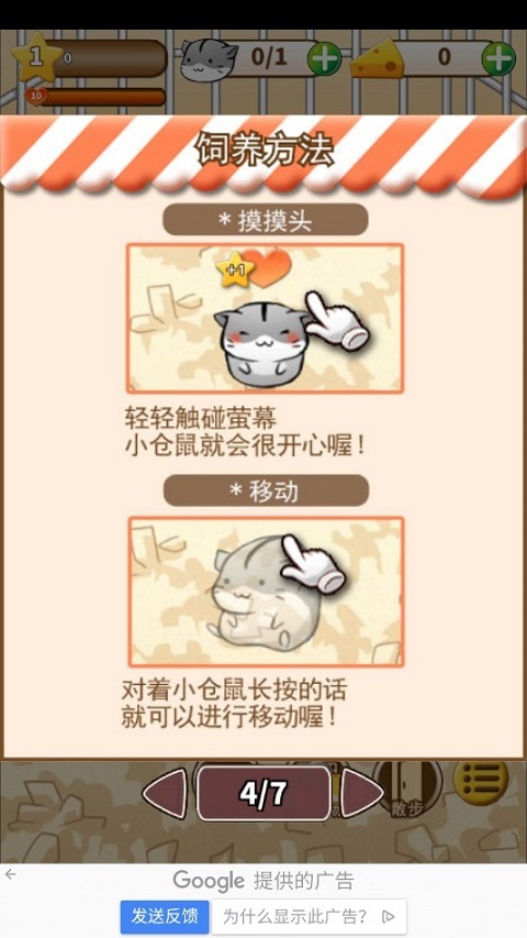 多多照顾小仓鼠‧并养育它的话,升级时就会给予硬币。
