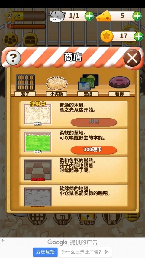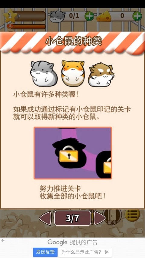 小仓鼠关卡:此类型关卡通关的话就可以饲养新种类的小仓鼠。