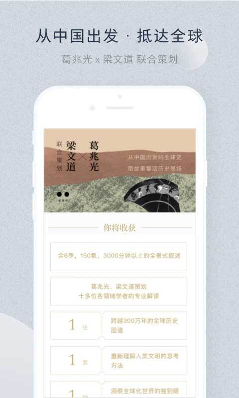 我们提供一系列有助于长期养成阅读、思考与审美能力的方案。同时,邀请到极为优秀的知识摆渡人陪伴您一路同行。首期上线的内容,就有杨照的《中国经典导读》以及焦元溥的《一听就懂的古典音乐史》。