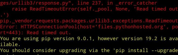 4、这个是命令窗下pip下载失败按着黄色提示进行操作。