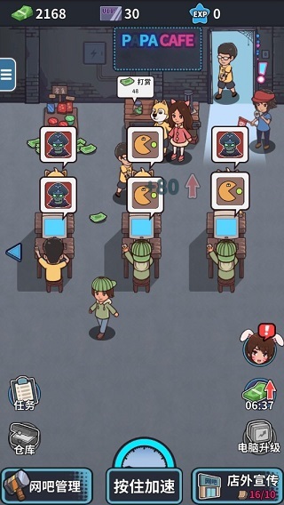 和多数模拟经营类游戏类似,玩家得借助推广或者举办活动的方式来提升人气,招揽更多的顾客与会员,就像常见的“冲100送100”这种。与此同时,还得雇佣员工,让他们妥善打理网吧的各类事务,毕竟漂亮可爱的女网管没准能吸引更多人气呢~