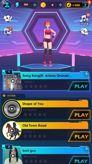 4、在这款音乐游戏里,涵盖了丰富多样的流行歌曲,其中有EDM歌曲、Hip Hop歌曲、KPOP歌曲,还有跳舞歌曲、钢琴歌曲,以及卡通歌曲和漫画歌曲。