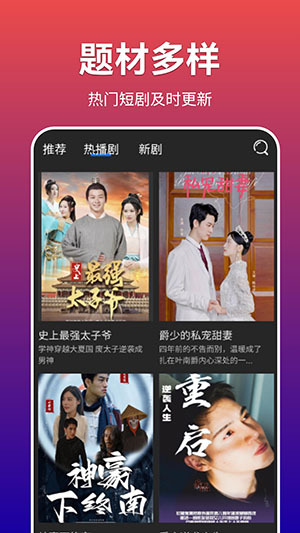 3、这款软件具备快速升级的能力,并且能够持续更新最新短剧作品,确保用户能够在第一时间观看到最新短剧。