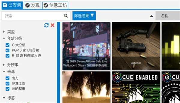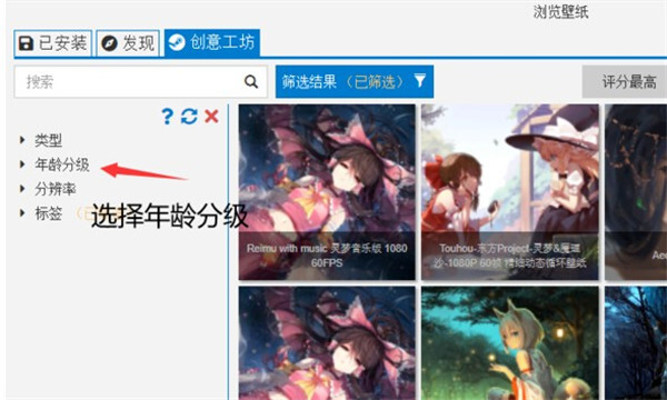 2、进入创意工坊页面,在左侧菜单选项里,能看到相应的成人R18选项,点击并勾选该选项。